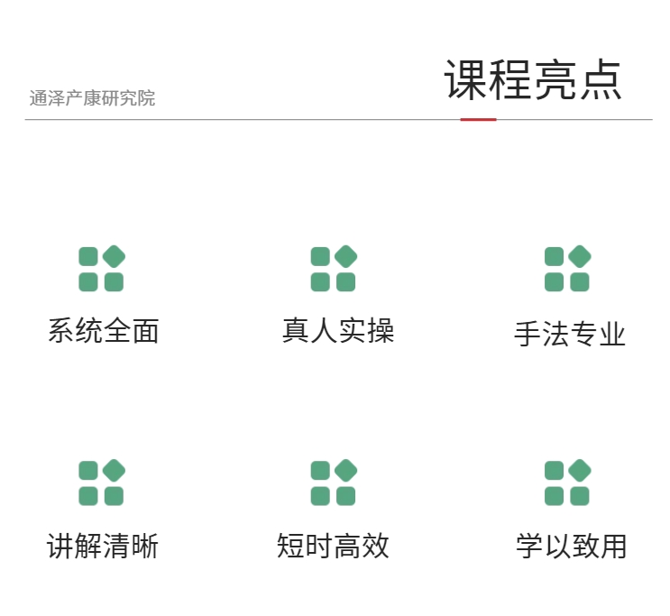 本期課程內容以教學(xué)手法為主,主要教學(xué)包括產(chǎn)后內臟復位方法、骨骼調整、常見(jiàn)產(chǎn)后身體疼痛處理等流程、盆底精調等要領(lǐng)和傷口瘢痕手法五大體系多維度的產(chǎn)后修復方法。