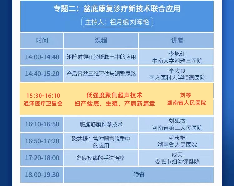 湖南省人民醫院劉琴教授將以《低強度聚焦超聲技術(shù)-婦產(chǎn)盆底、生殖、產(chǎn)康新篇章》為主題,并結合自身的臨床經(jīng)驗,為更多醫生、患者提供了創(chuàng )新和尖端的盆底和產(chǎn)后醫療技術(shù)應用,共同推動(dòng)女性盆底相關(guān)疾病治療水平向前發(fā)展。