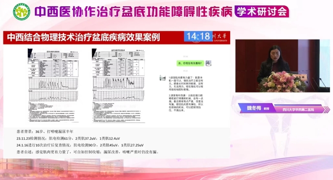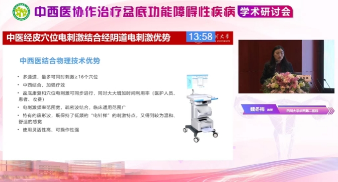 婦產(chǎn)康復科魏冬梅主任就《現代中西醫結合物理治療技術(shù)在盆底疾病中的應用》作了深入的分享。