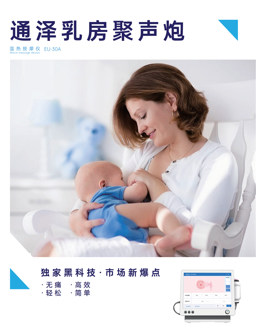 通澤乳房聚聲炮,獨家黑科技市場新爆點,深度聚焦產(chǎn)后缺乳調理、乳脹調理、乳腺保養(yǎng)、乳房塑形、淤積疏通、疤痕軟化等客戶的多樣化需求,利用低強度聚焦聲波技術,實現(xiàn)無痛、高效、輕松、簡單的產(chǎn)后乳房護理,真正滿足客戶對產(chǎn)后乳房護理的需求和預期。